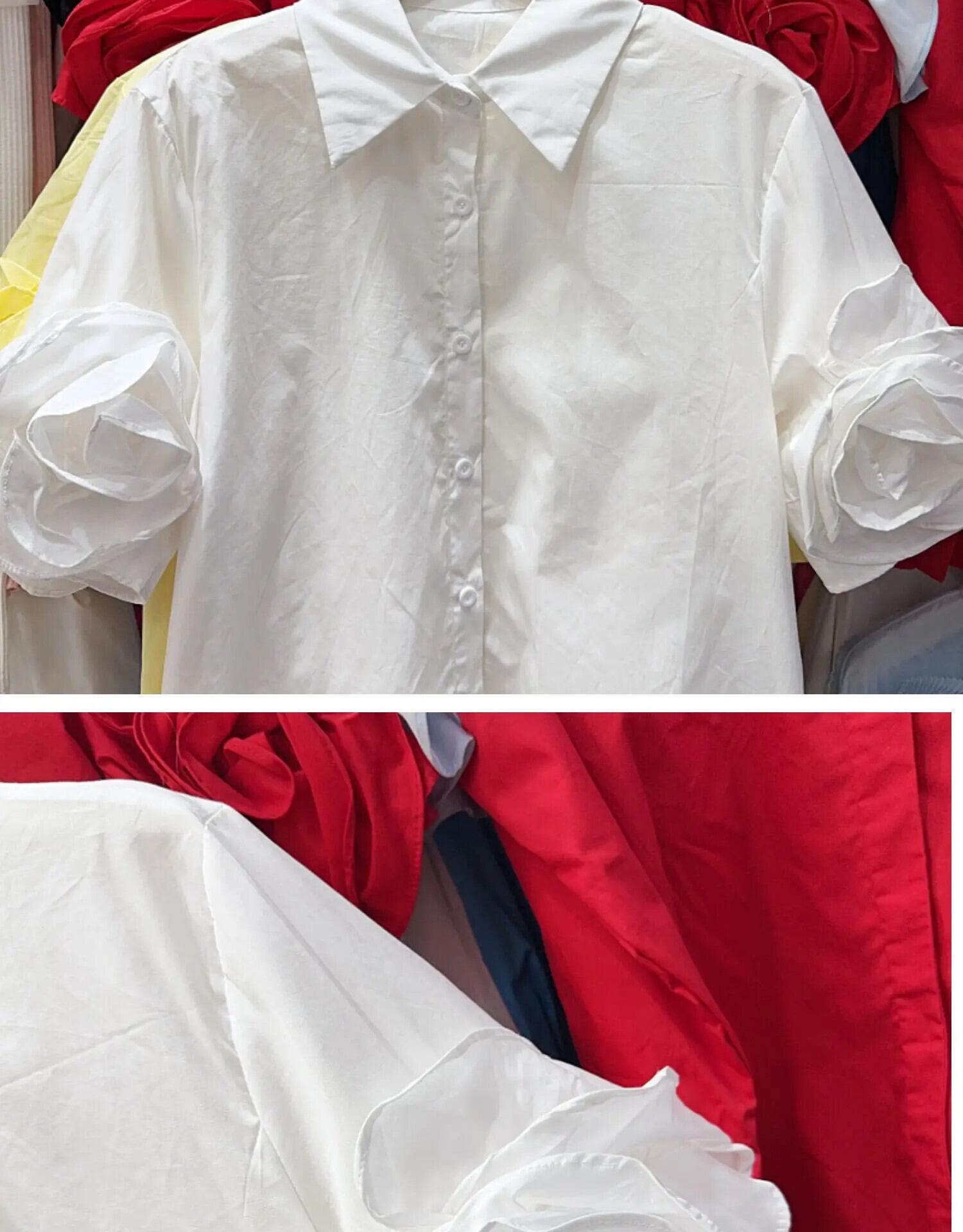 Nomikuma フレンチ 3D プレート フラワー 半袖シャツ レディース 2024 春夏スタイル ブラウス デ ショート ハーフスリーブ スプリング 春物 サマー 夏物 フラワーデザイン