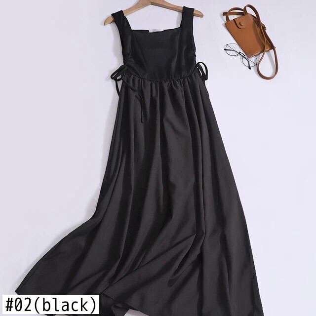 Nomikuma 夏巾着ワイドショルダーストラップドレスレディーススクエアネックノースリーブ A ラインタンクドレス サマー 夏物 Aライン スクウェア