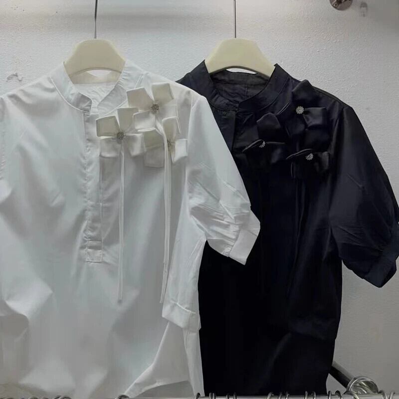 Nomikuma 2024 夏シャツフラワーシックフレンチ半袖トップカジュアルプルオーバー甘いブラウス ショート ハーフスリーブ 大人ガーリー スウィート キュート サマー 夏物 フラワーデザイン