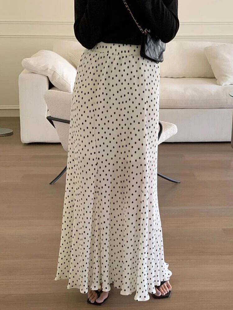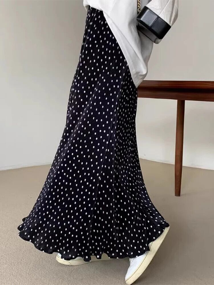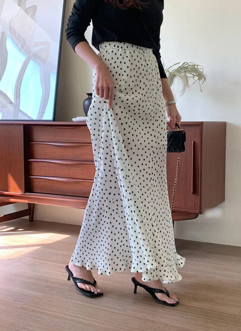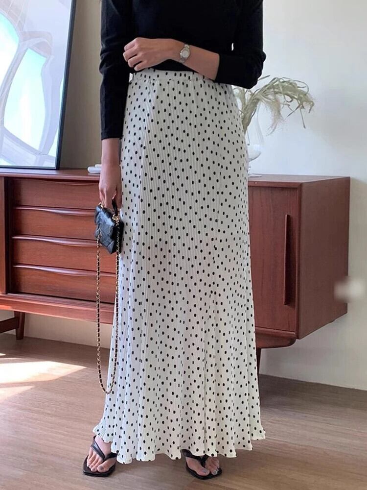 Nomikuma 夏フレンチウエスト多目的痩身プリーツコントラスト水玉ハーフレングススカート サマー 夏物