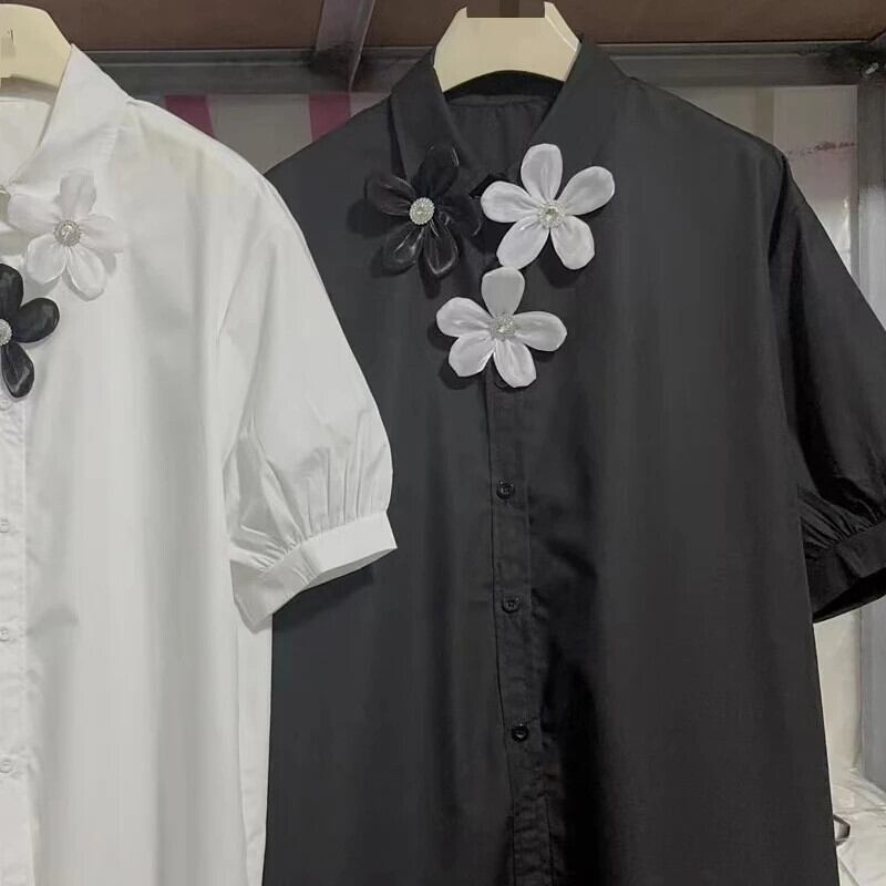 Nomikuma 2024 春夏半袖 3D 三花シャツターンダウン襟半袖トップス ショート ハーフスリーブ スプリング 春物 サマー 夏物 フラワーデザイン