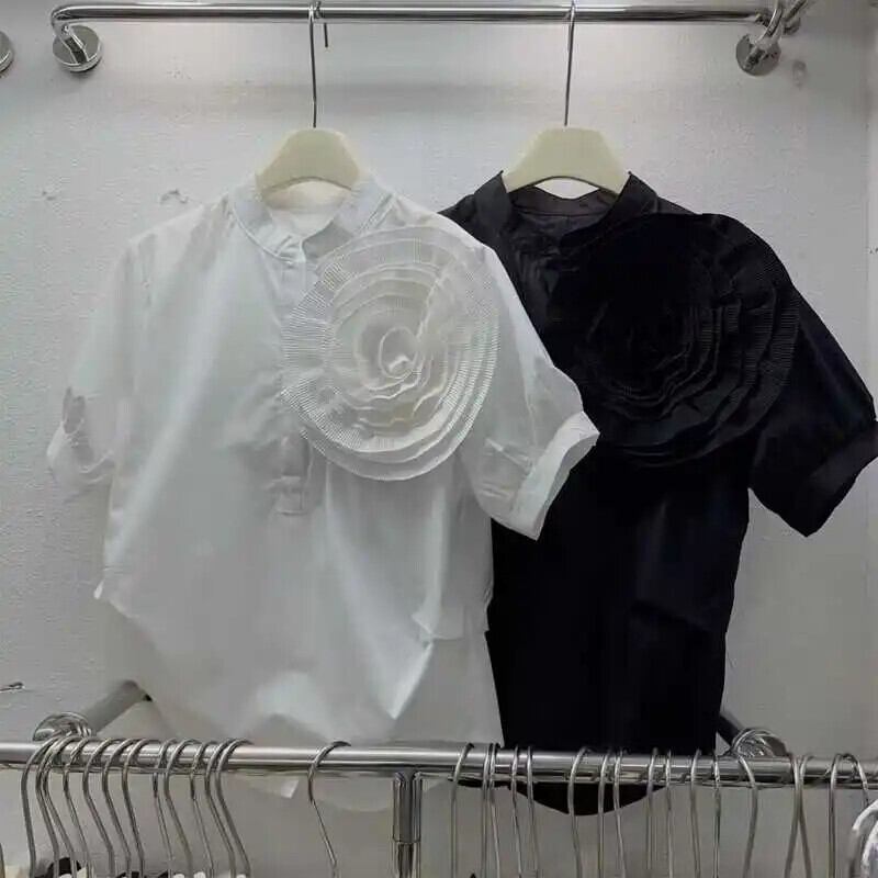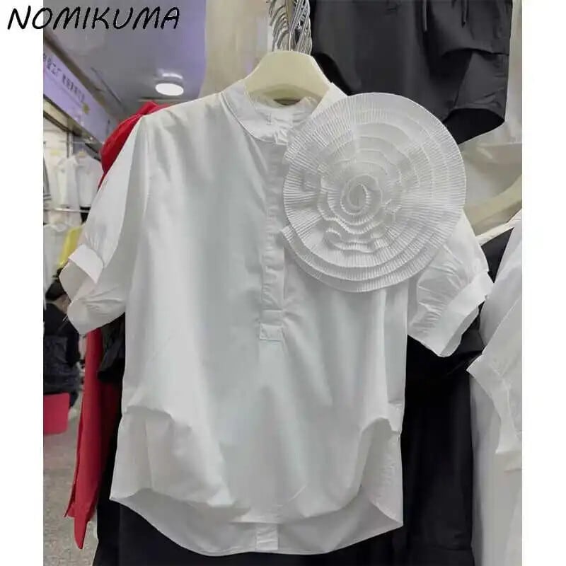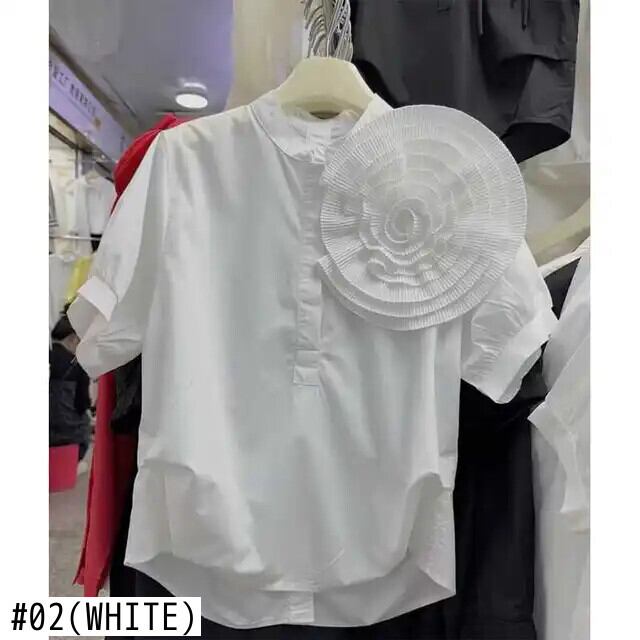 Nomikuma シャツ レディース 半袖 立体プレートフラワー 2024 夏 フリルエッジ パッチワーク ニッチフレンチトップ ショート ハーフスリーブ サマー 夏物 フラワーデザイン