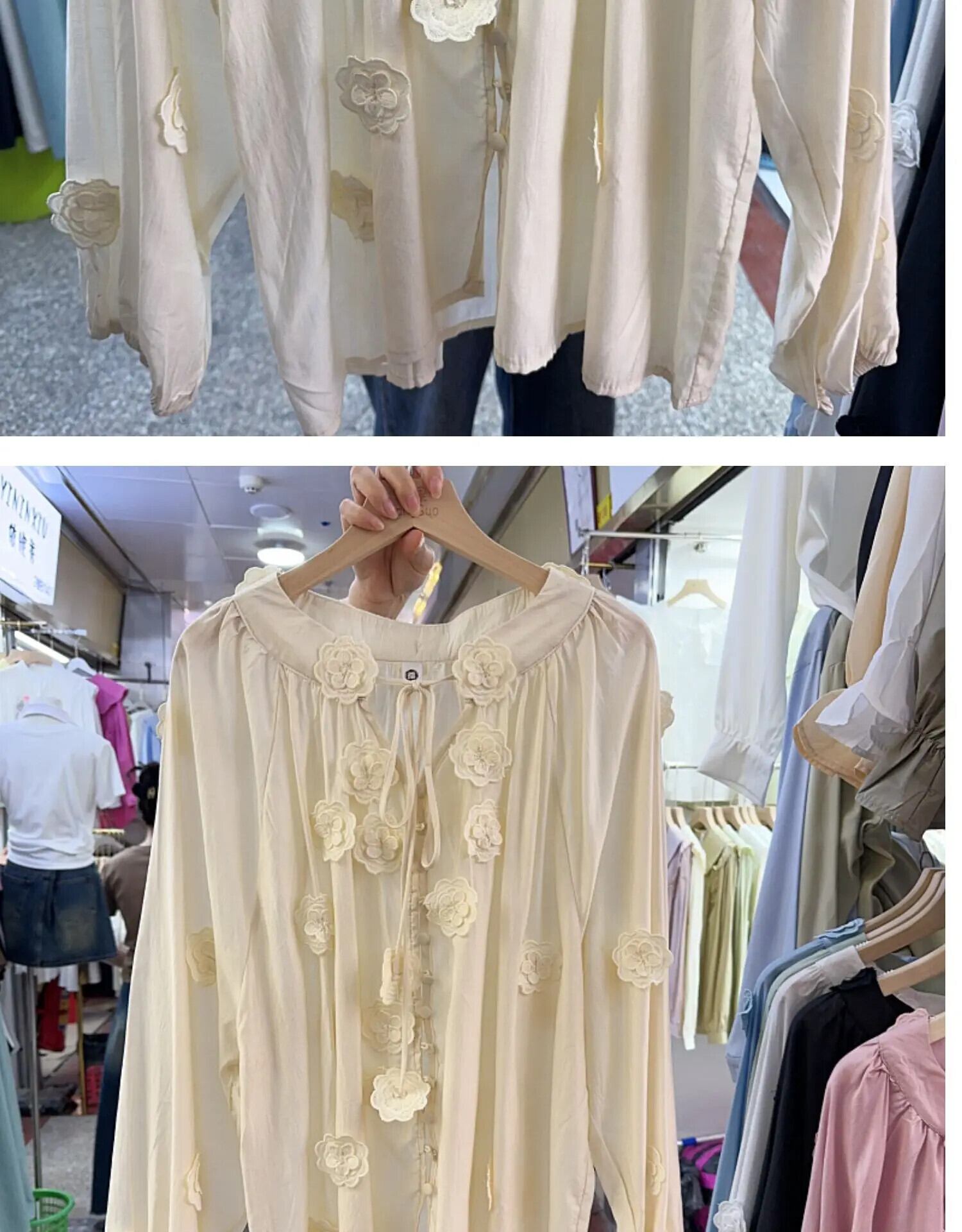 Nomikuma 2024 フレンチ刺繍シャツレディース夏薄手日焼け止め甘い白 V ネックパフスリーブトップデ ホワイト レッド 大人ガーリー スウィート キュート カジュアル サマー 夏物 Vネック