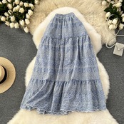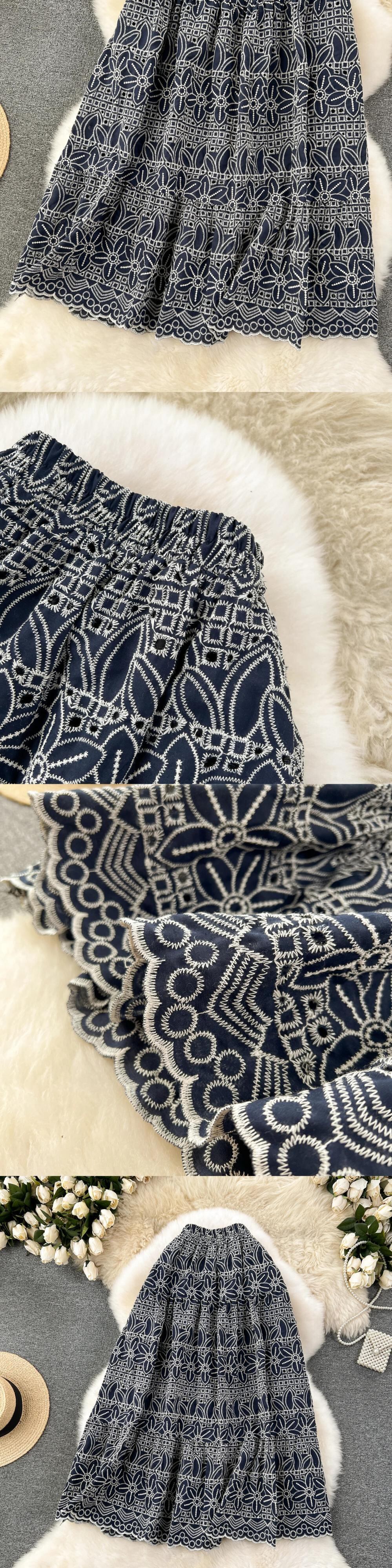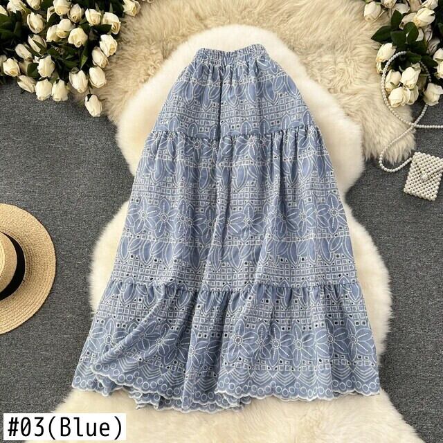 Nomikuma レディース レトロ刺繍スカート 多用途伸縮性ウエストミッドレングス A ラインスカート Faldas エラスティック Aライン