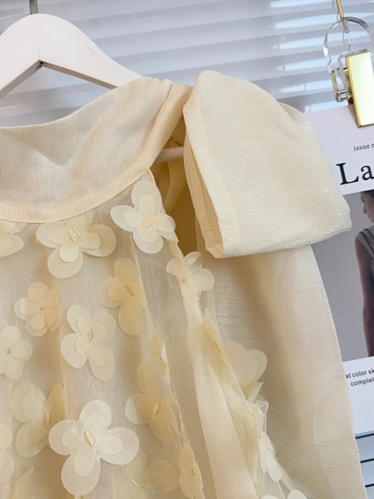 Nomikuma 2024 夏ノースリーブシャツレトロフレンチ弓ぶら下げネックオフショルダー三次元花びらトップ リボン サマー 夏物