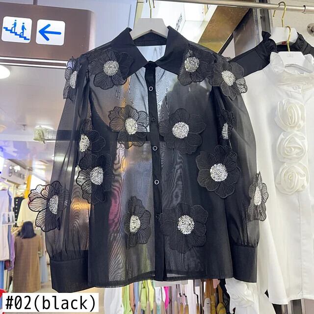 Nomikuma レディース シャツ 2024 春 ニッチビーズ 3D フラワーパース ブラウス トップス スプリング 春物 フラワーデザイン