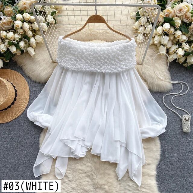 Nomikuma セクシーオフショルダーフレンチパフ長袖不規則シフォンシャツ 2024 Sring 夏トップスデ ロング サマー 夏物