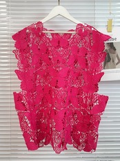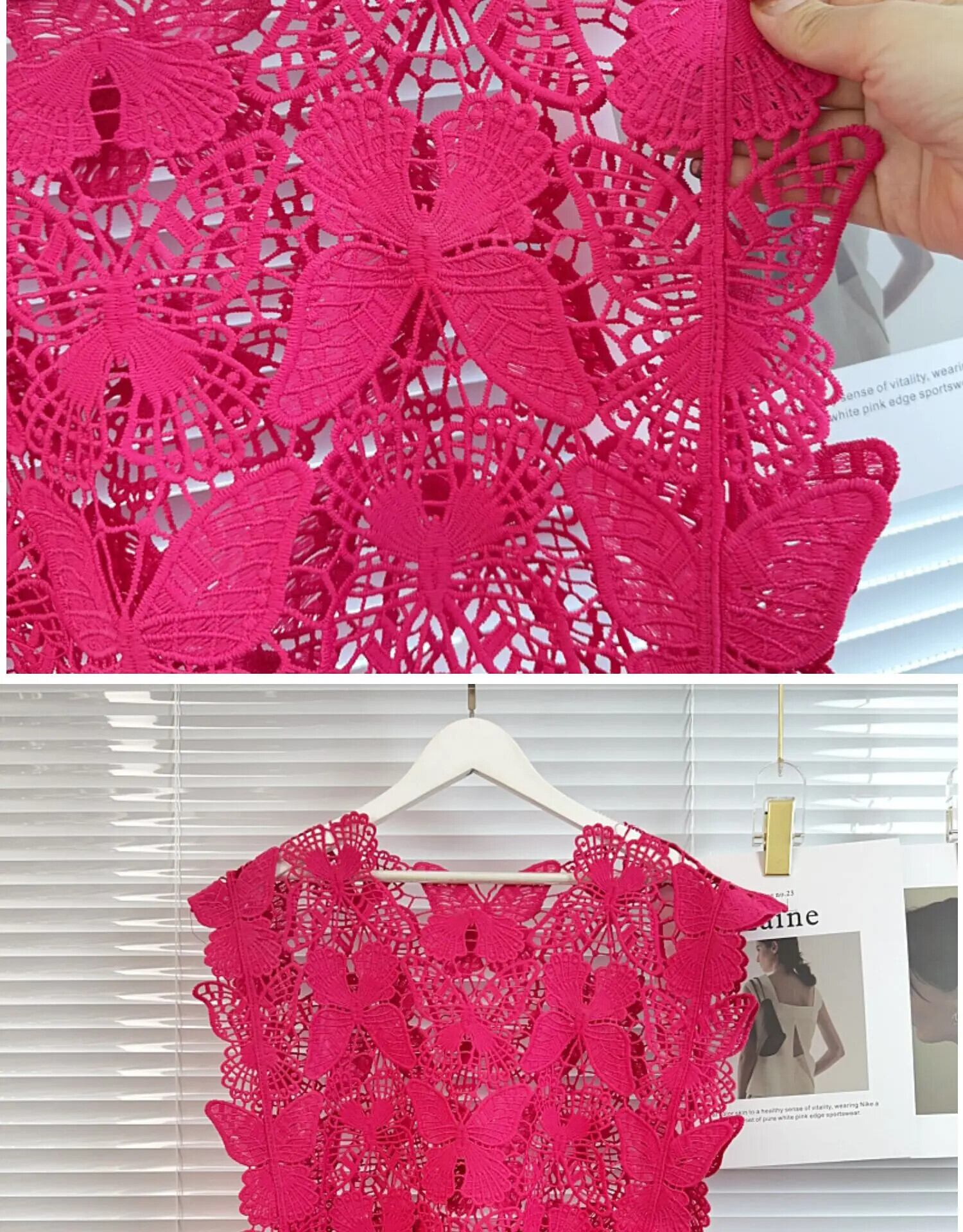 Nomikuma ベストノースリーブ夏 2024 春夏レイヤードレース蝶刺繍トップ レッド スプリング 春物 サマー 夏物