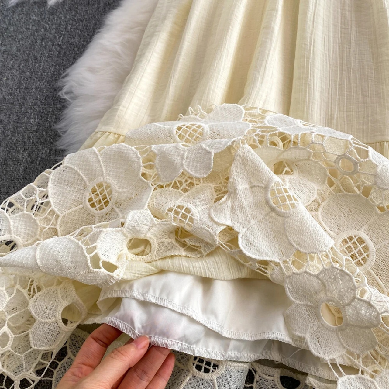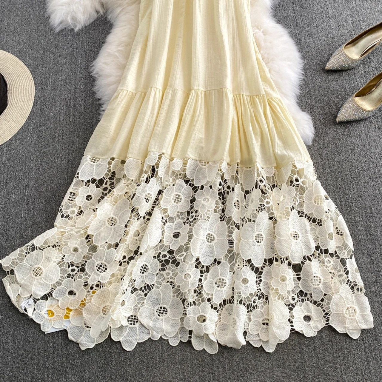 Nomikuma 休暇スタイルロングドレスフレンチハンギングネックサマーレースアウトドレス 2024 A ライン Vestidos 夏物 Aライン