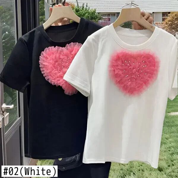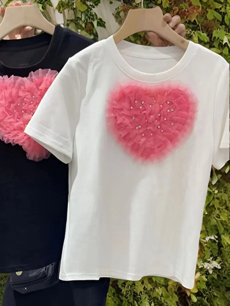 Nomikuma 2024 ラブハートメッシュビーズ春夏ラブホットダイヤモンド半袖 Tシャツレディースおしゃれトップス ショート ハーフスリーブ スプリング 春物 サマー 夏物
