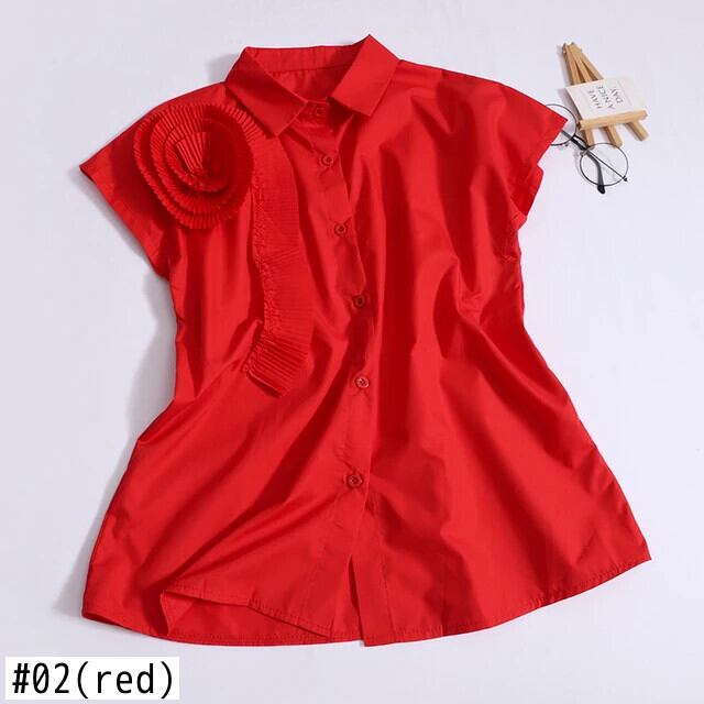 Nomikuma プリーツ立体フラワーレディーストップ多用途シングルブレストターンダウンカラーノースリーブシャツ フラワーデザイン