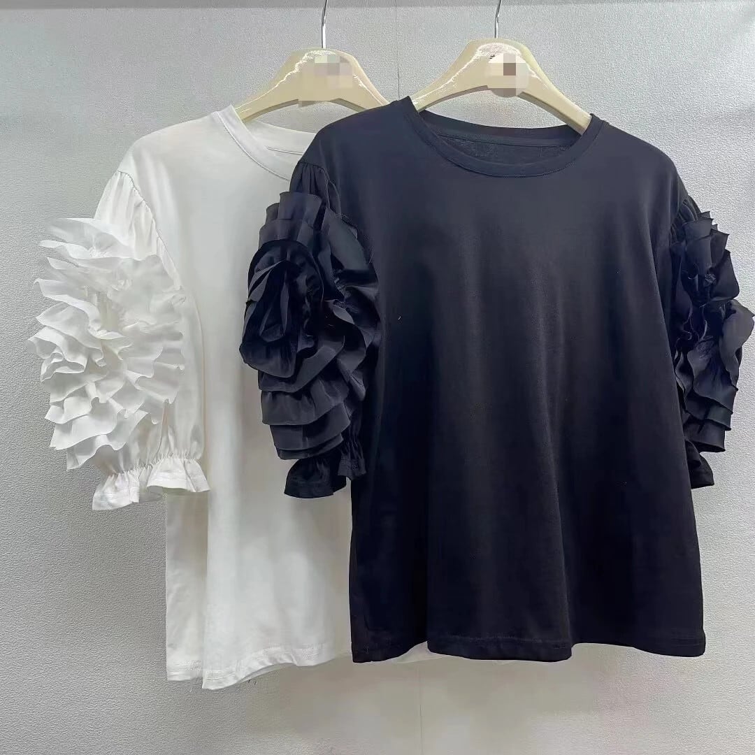 Nomikuma 2024 春夏ラウンドネック半袖 3D フラワー因果シック Tシャツ因果グラフィック Tシャツ ショート ハーフスリーブ スプリング 春物 サマー 夏物 Oネック フラワーデザイン