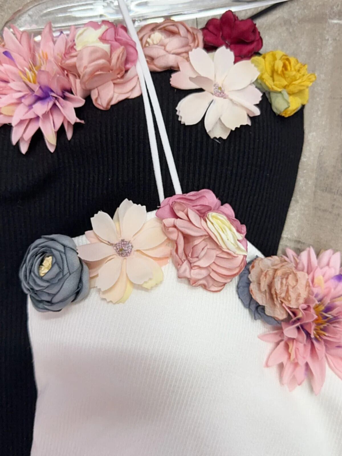 Nomikuma 甘辛スクエアカラーフレンチ立体フラワーサスペンドタンクトップレディース夏ショートキャミソール 大人ガーリー スウィート キュート カジュアル サマー 夏物 フラワーデザイン スクウェア