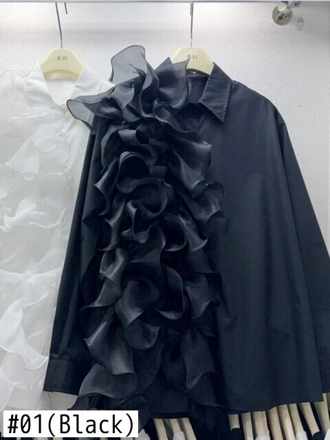 Nomikuma 2024 夏 3D フラワー フリル エディション ボトム シャツ 半袖 レディース トップス ブラウス ショート ハーフスリーブ サマー 夏物 フラワーデザイン