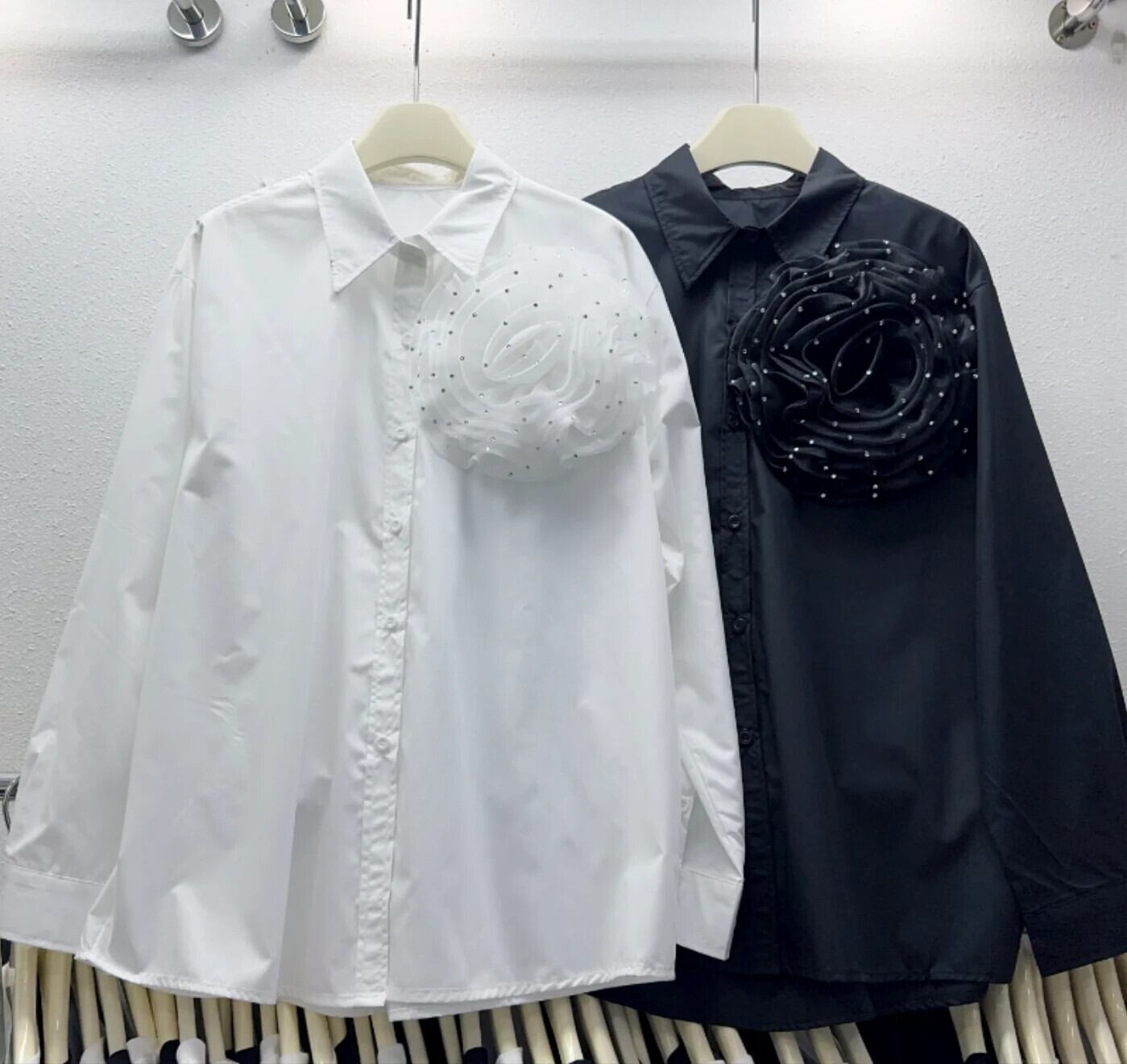 Nomikuma 2024 夏レディースシック 3D フラワーブラウス長袖ターンダウンカラーシャツトップ De ロング サマー 夏物 フラワーデザイン