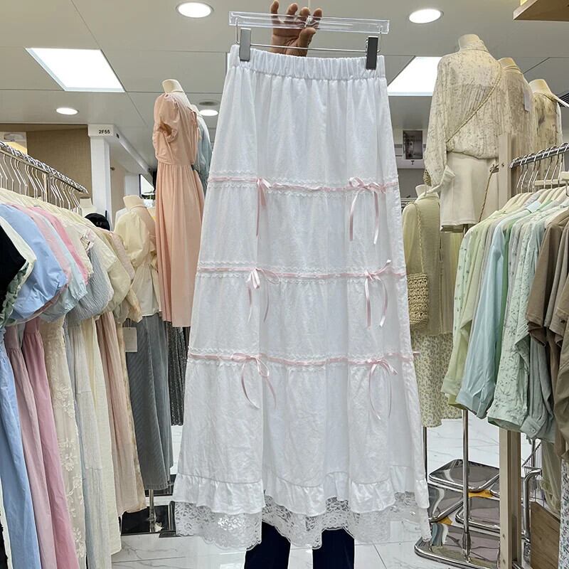 Nomikuma 2024 春夏スイートリボンボウスプライスレースロングスカートレディース 大人ガーリー スウィート キュート カジュアル スプリング 春物 サマー 夏物
