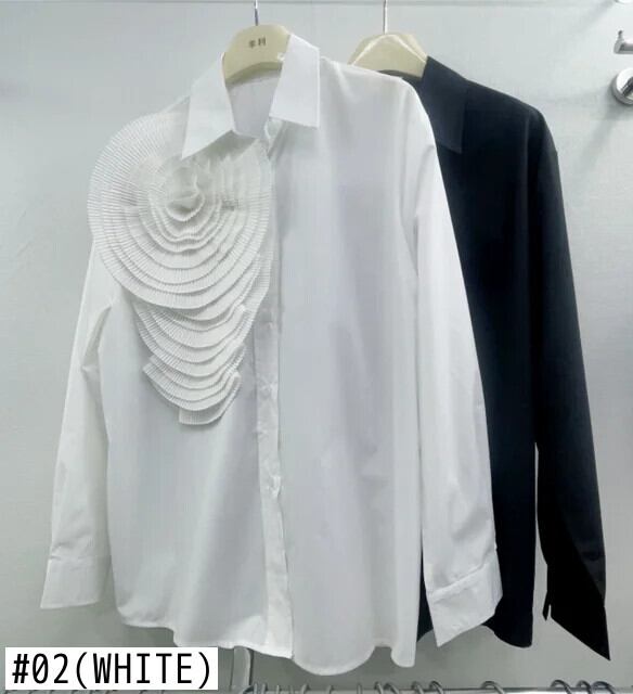 Nomikuma フラワー長袖トップス 2024 春秋シャツ因果スタンドネックブラウス ロング スプリング 春物 オータム 秋物 フラワーデザイン