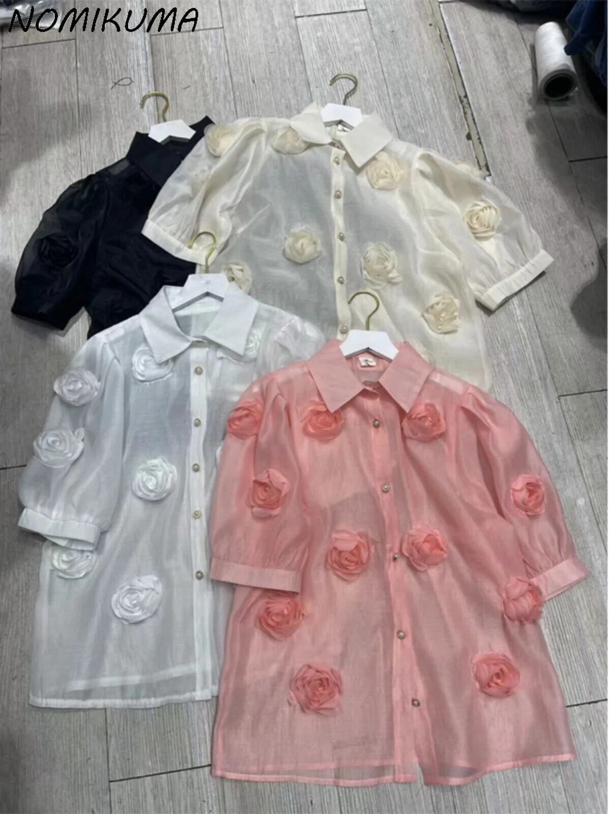 Nomikuma フレンチ通勤シャツシックトップパフスリーブ 2024 春夏ブラウスデ スプリング 春物 サマー 夏物