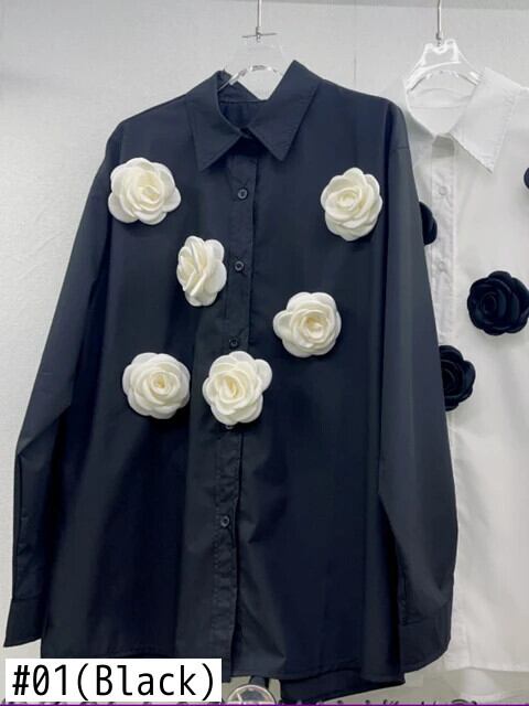 Nomikuma 立体フラワー レディース トップス 多用途 シングルブレスト ターンダウンカラー ノースリーブ シャツ フラワーデザイン