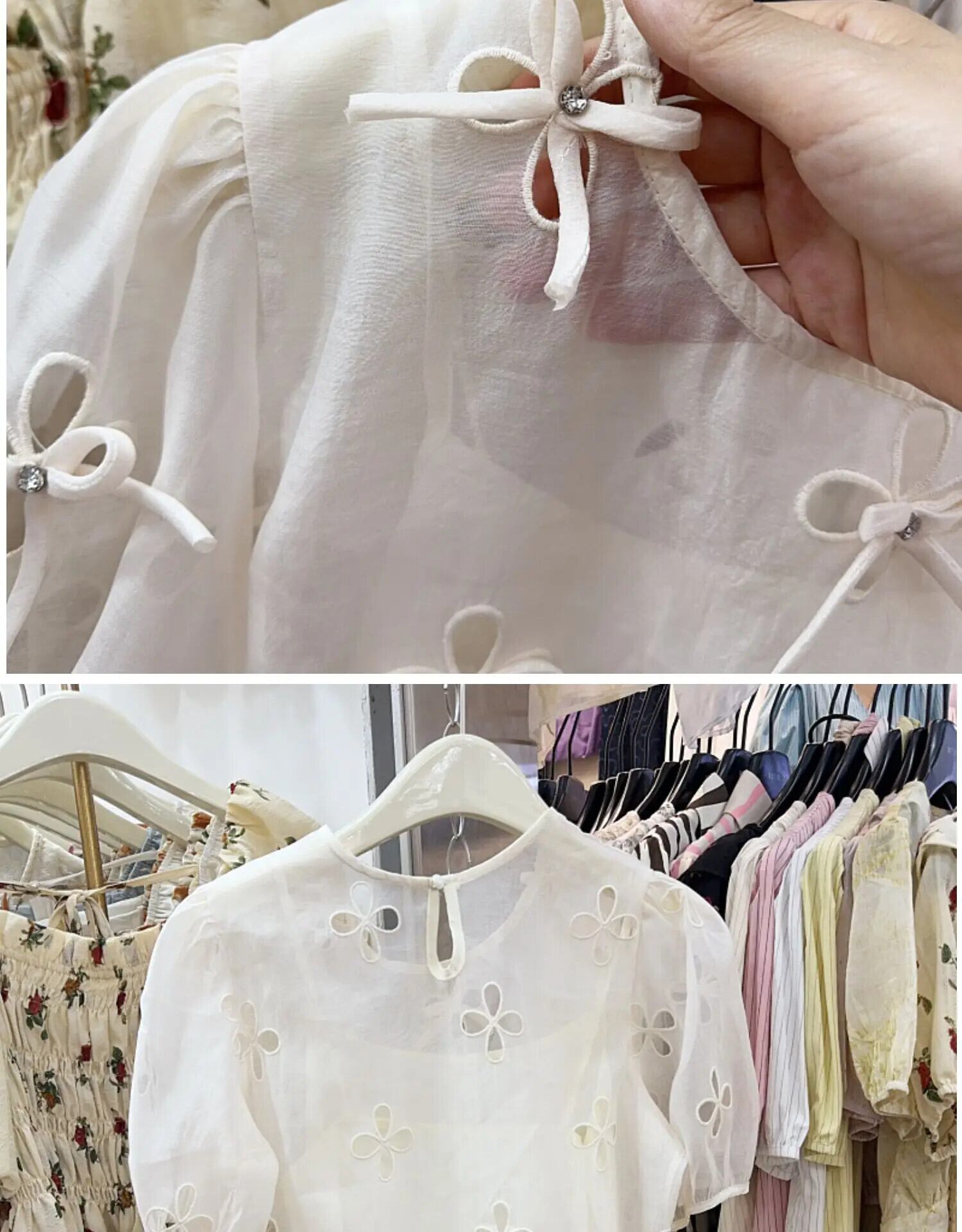 Nomikuma 夏パフ半袖 3D 弓トップ 2024 Causall プルオーバーシャツ 2 枚セット ショート リボン ハーフスリーブ サマー 夏物