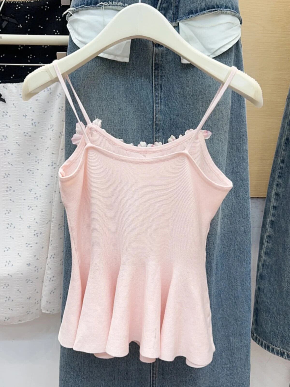 Nomikuma 2024 甘いスパイシーセクシー立体フラワーキャミソールベスト夏ニッチニットボトムトップ 大人ガーリー スウィート キュート カジュアル サマー 夏物 フラワーデザイン