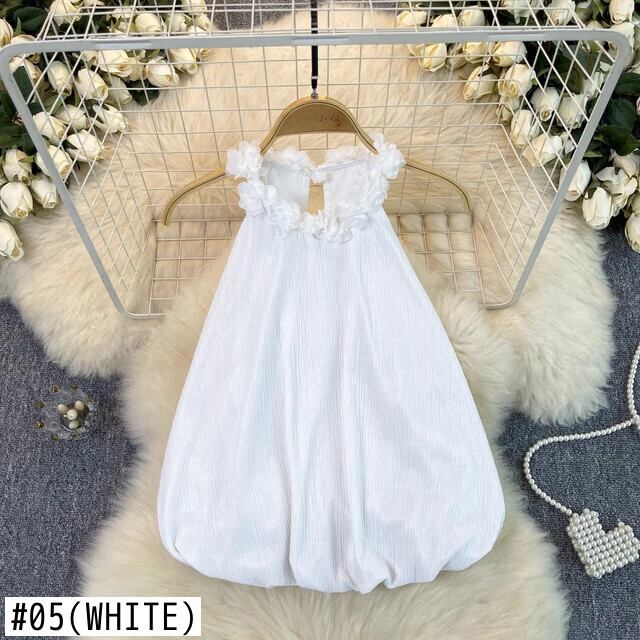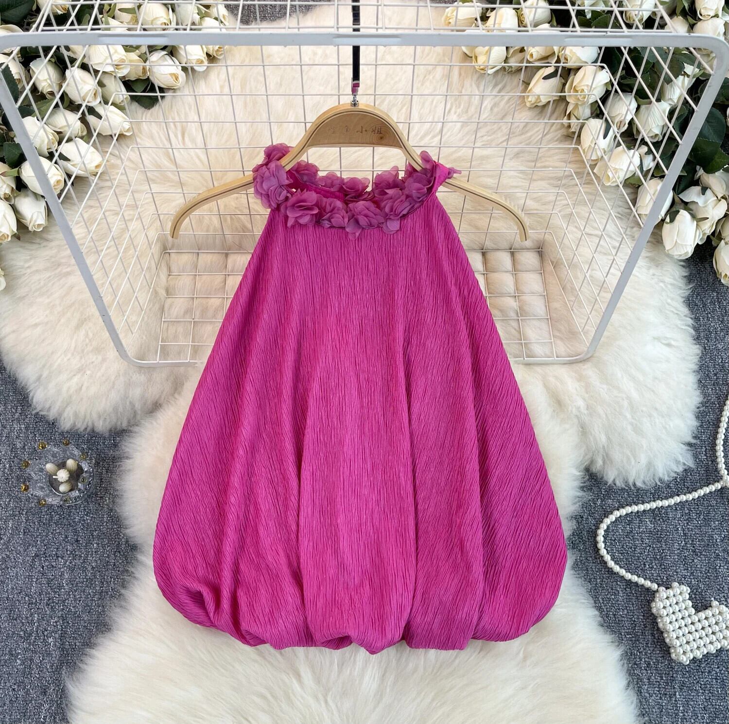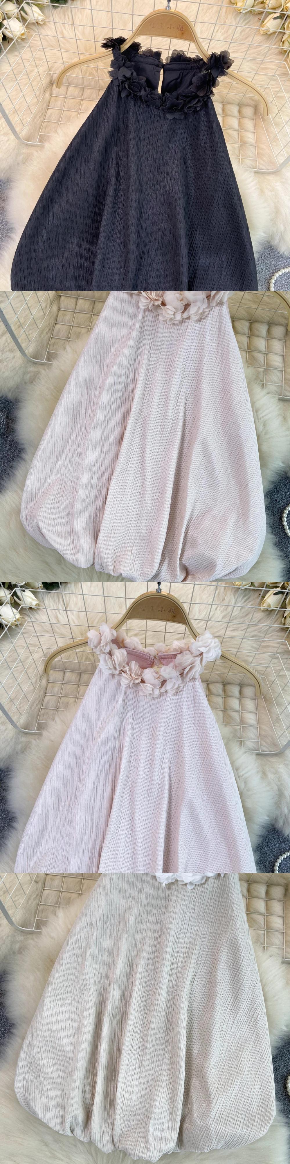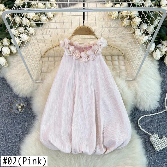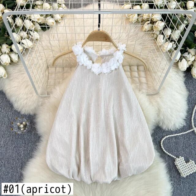 Nomikuma ハンギング ネック タンク トップ レディース 多用途 フレンチ ノースリーブ 3D フラワー カジュアル ショート トップ フラワーデザイン