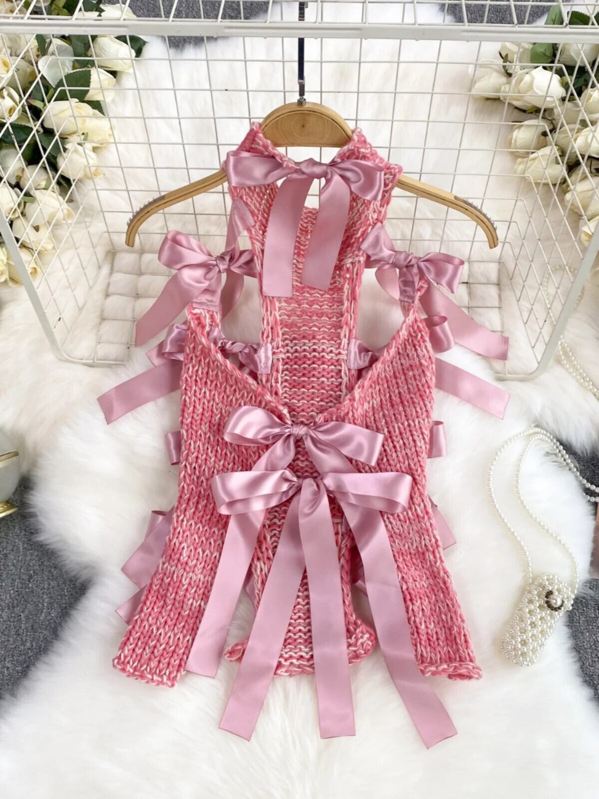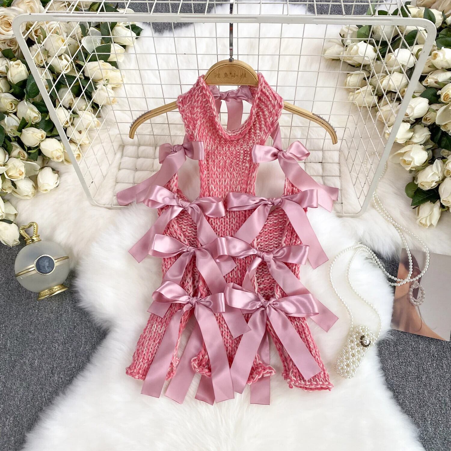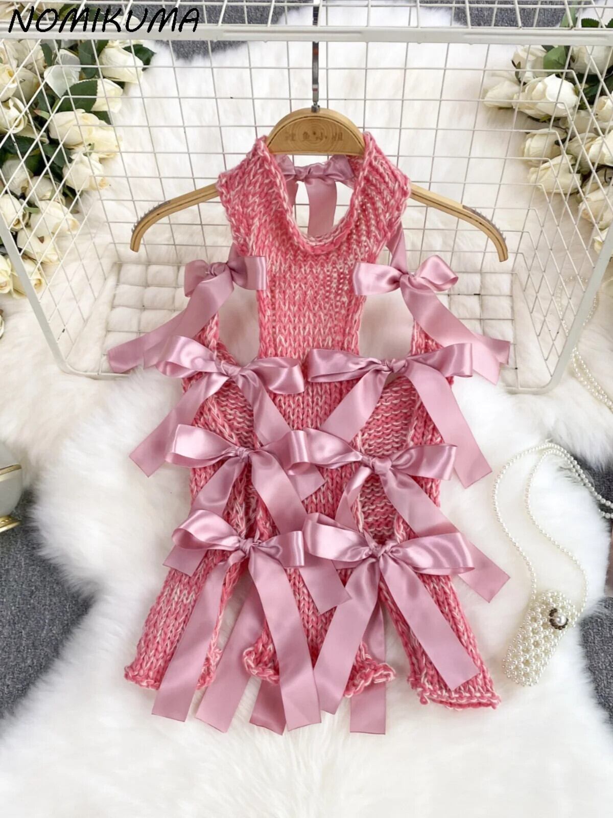 Nomikuma セクシーオフショルダーホルターノースリーブベスト蝶ネクタイセクシースパイシーガール Y2k タンクトップ リボン