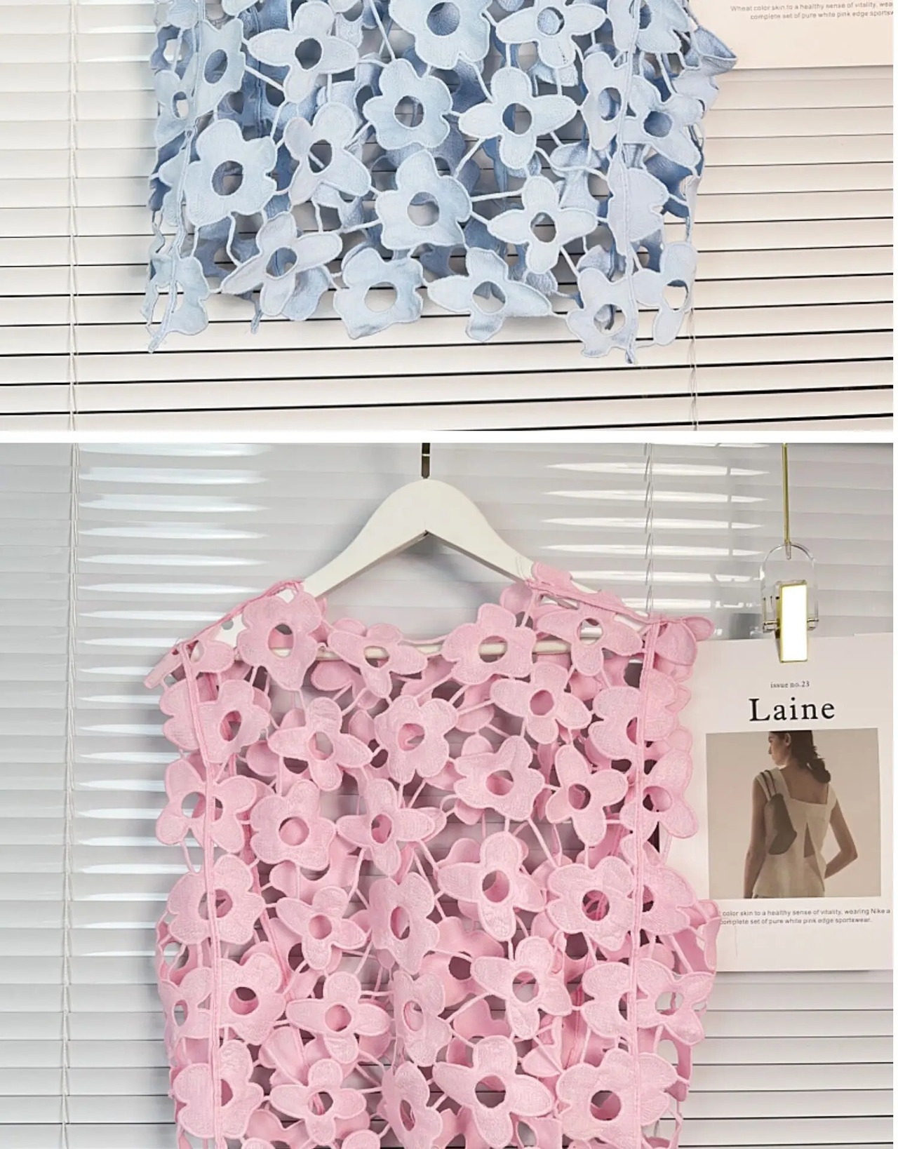 KUSAHIKI ラウンドネック刺繍トップ 2024 夏ショートベストタンク レッド サマー 夏物 Oネック