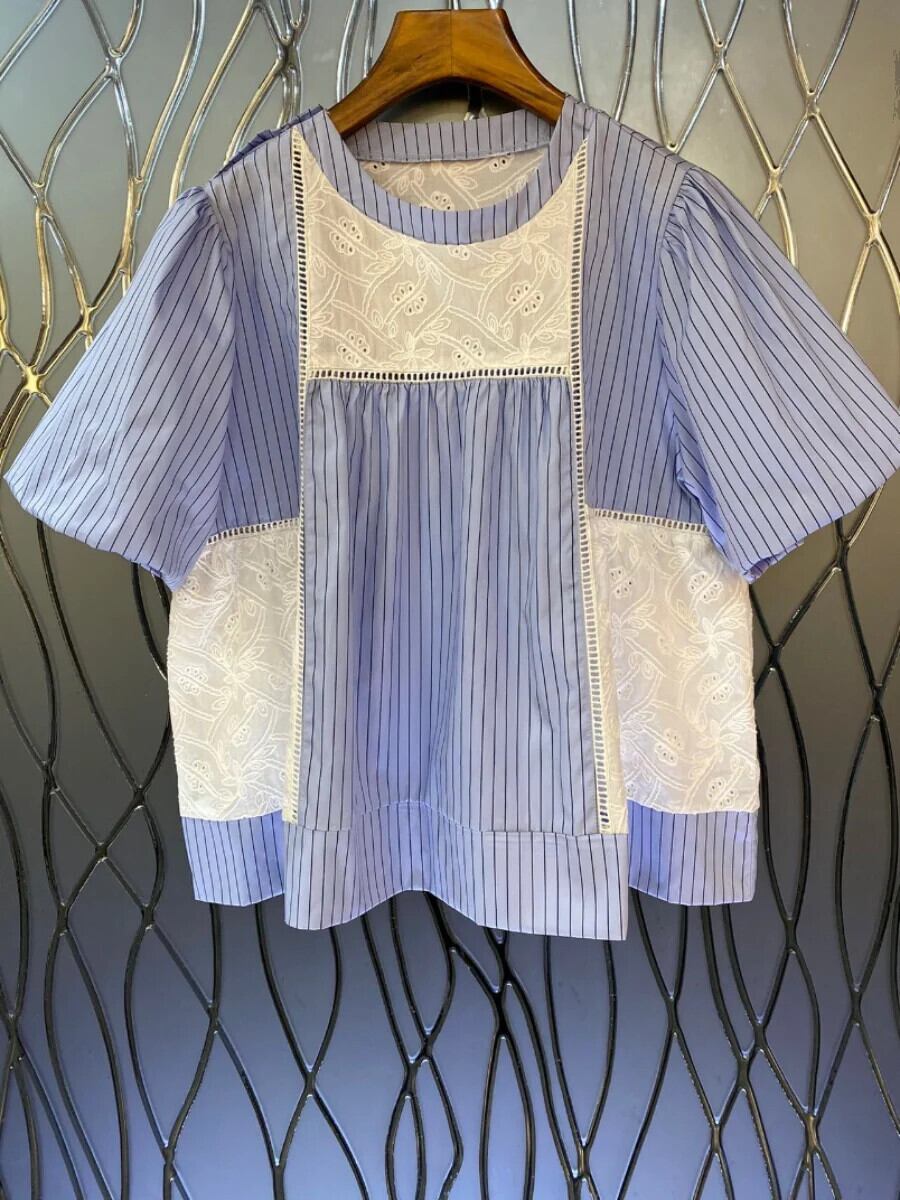 Nomikuma シック刺繍入りシングルショルダーバックルパフスリーブシャツレディース 2024 夏ラウンドネックプルオーバートップ レッド サマー 夏物 Oネック