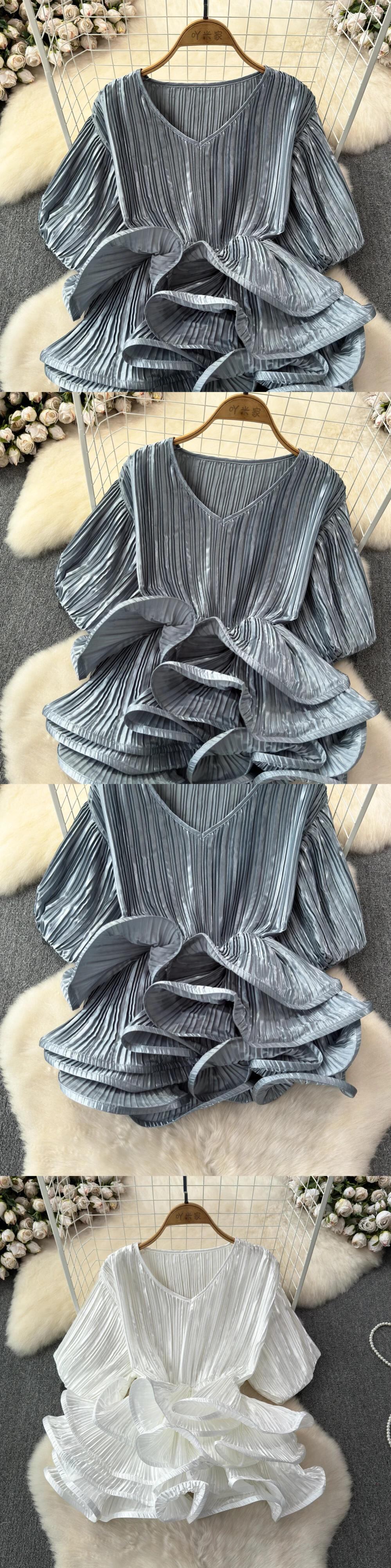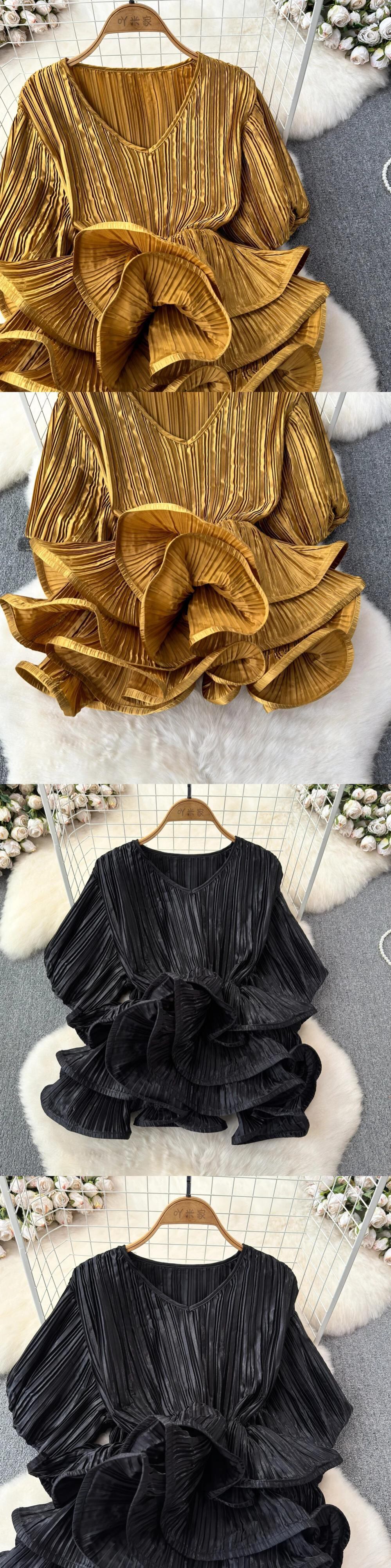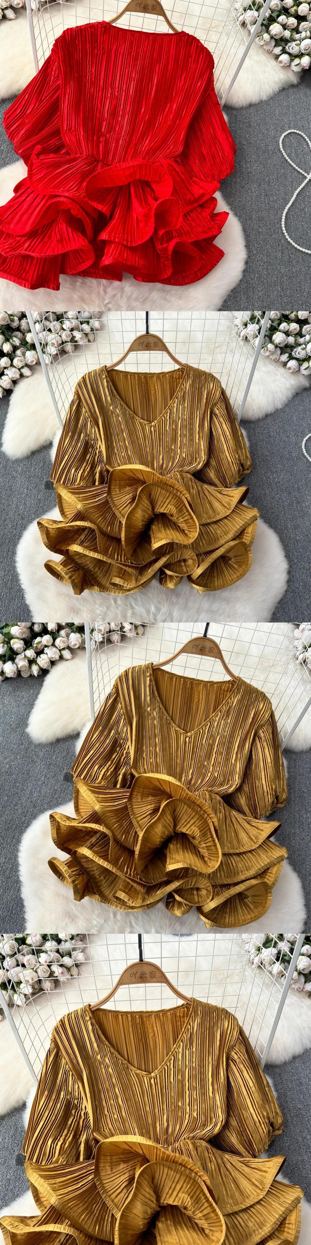 Nomikuma 2024 春夏ランタン長袖 V ネックスリムウエスト蓮葉スイングプルオーバーシャツ因果トップ ロング スプリング 春物 サマー 夏物 Vネック