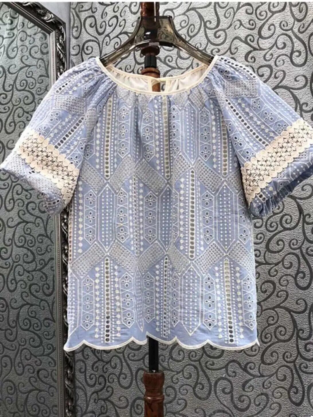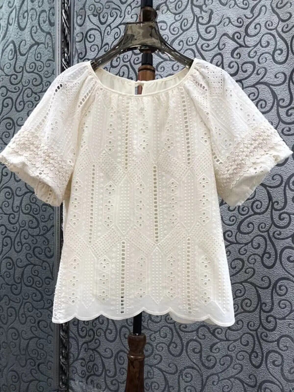 Nomikuma 2024 夏スタイルニッチシャツレディースショートパフスリーブレース刺繍くり抜きフレンチトップ サマー 夏物