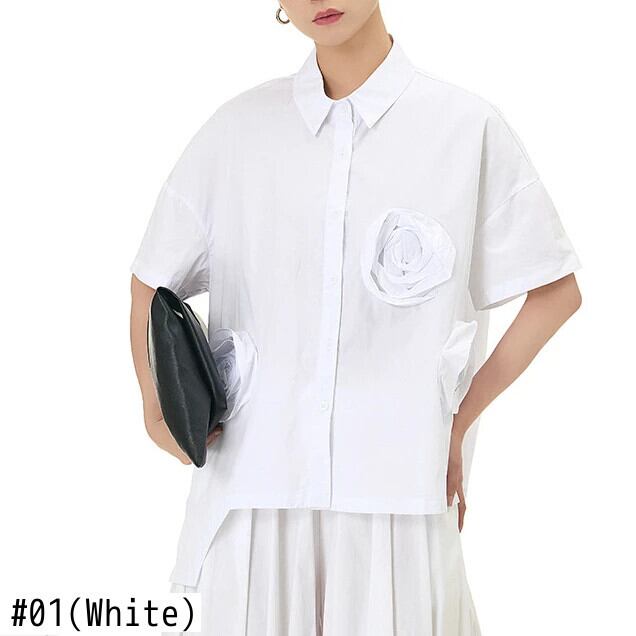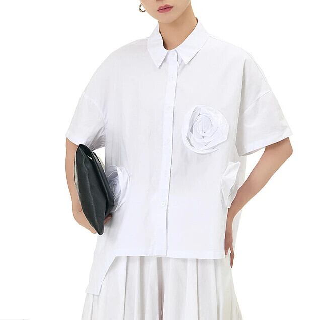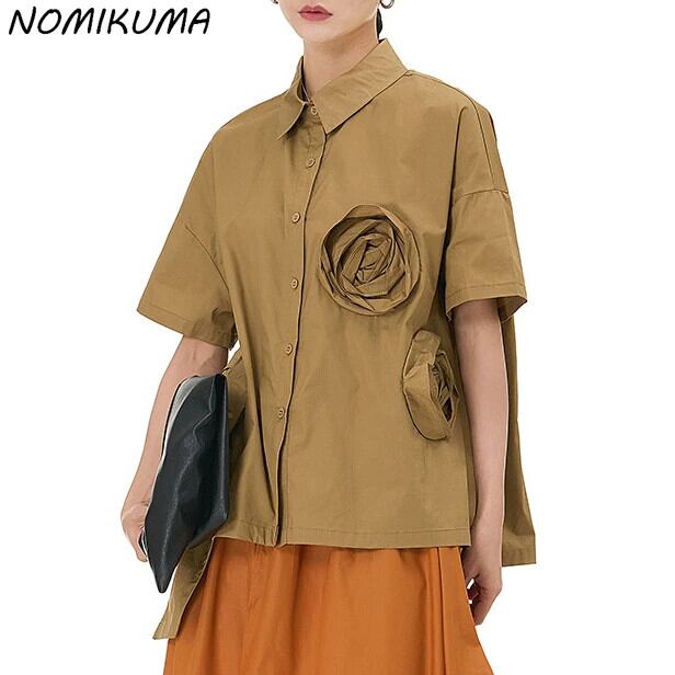 Nomikuma ese 半袖シャツ 2024 春 因果花シック レディース 万能トップス デ ショート ハーフスリーブ スプリング 春物 フラワーデザイン