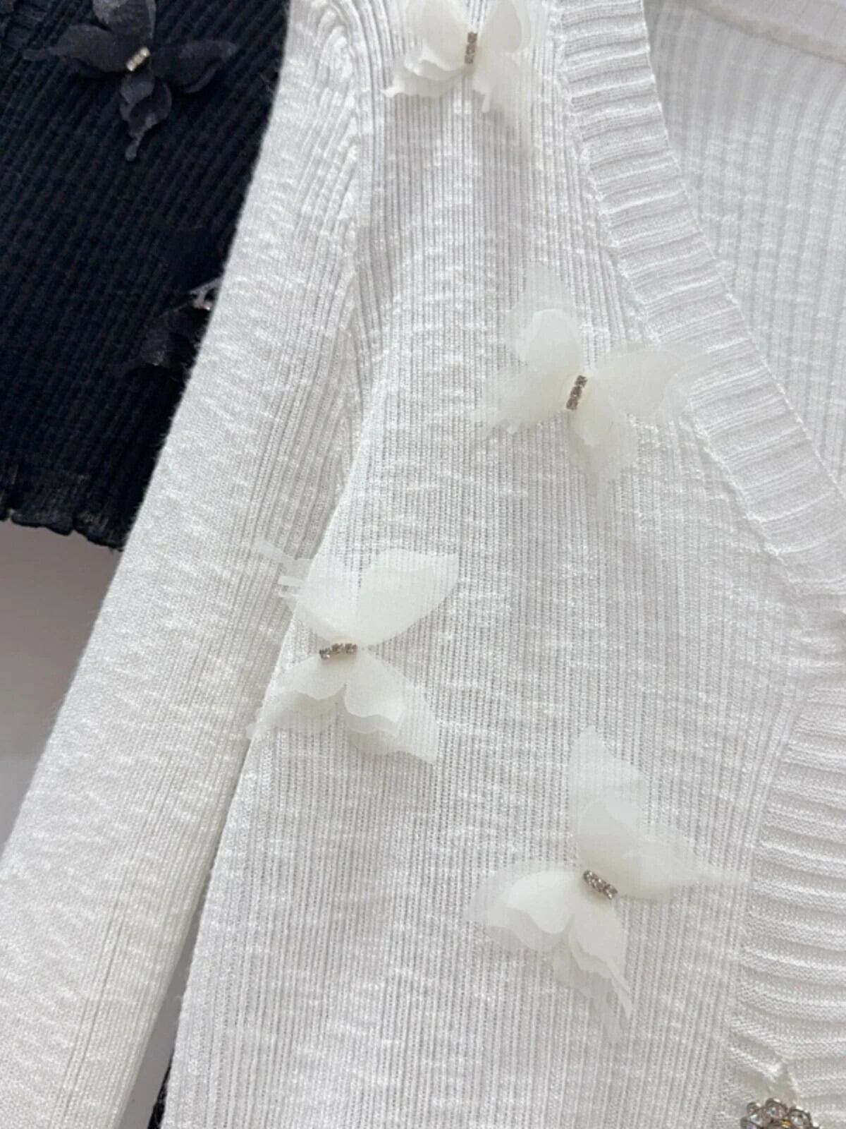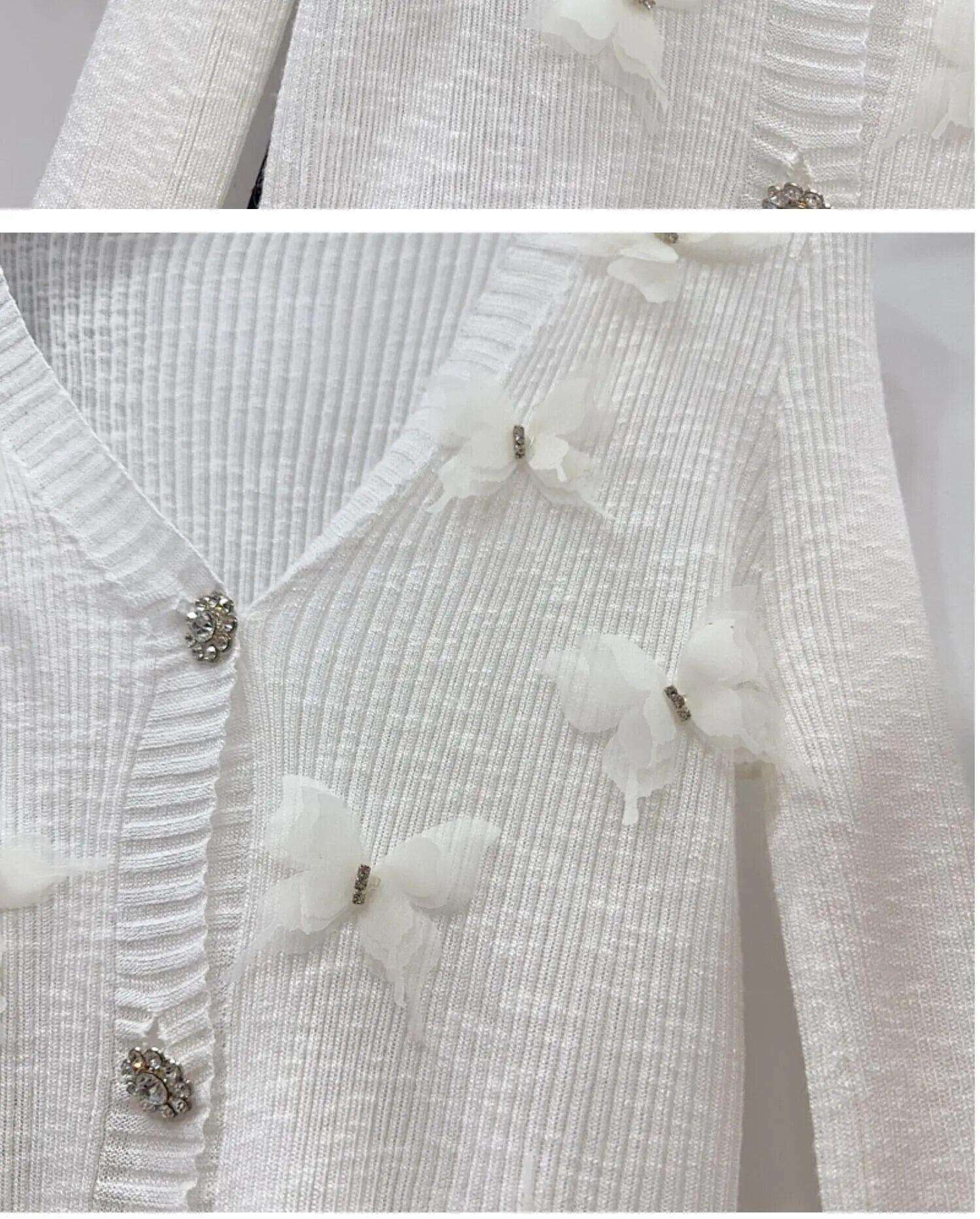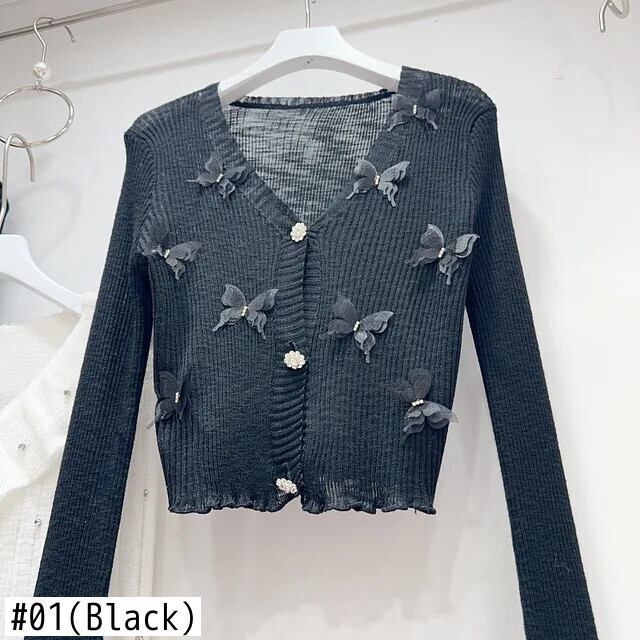 Nomikuma 2024 夏ネイルダイヤモンド 3D 蝶日焼け止めニット長袖カーディガンセータートップ ロング サマー 夏物