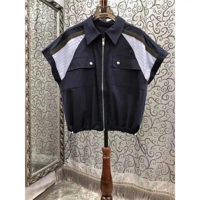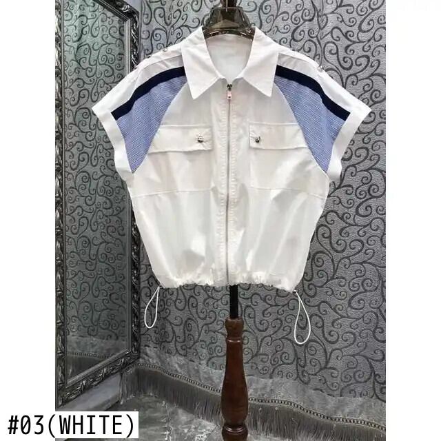 Nomikuma フレンチストライプパッチワーク裾巾着ジッパー半袖シャツレディース 2024 夏ニッチカジュアルトップ ショート ハーフスリーブ サマー 夏物