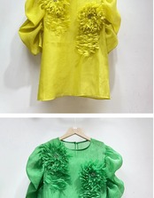 Nomikuma 2024 夏ニッチ半袖トップフレンチ立体フラワーシャツデ ショート ハーフスリーブ サマー 夏物 フラワーデザイン