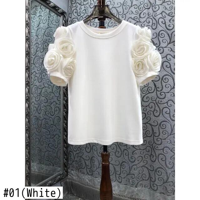 Nomikuma 2024 夏 レディース 3D フラワー 半袖 Tシャツ シンプル 万能 トップス ショート ハーフスリーブ サマー 夏物 フラワーデザイン