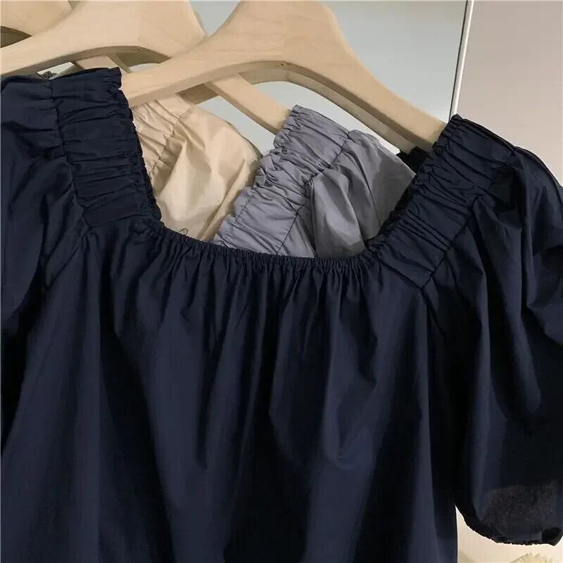 Nomikuma フレンチスクエアカラーパフスリーブブラウス夏ソリッドシャツ因果プルオーバーデ サマー 夏物 ソリッドカラー スクウェア