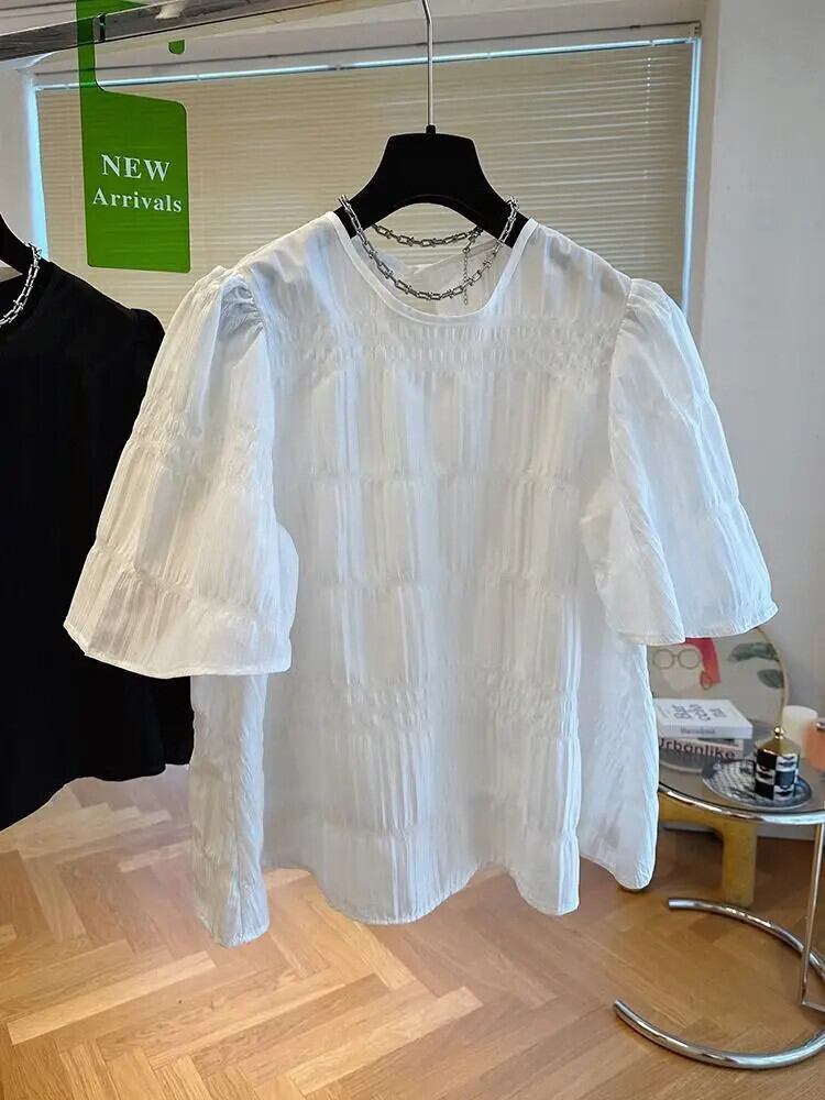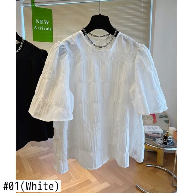 Nomikuma カジュアルホワイトプリーツブラウス甘いパフ半袖ドールシャツ 2024 夏ガールズトップ ショート ハーフスリーブ 大人ガーリー スウィート キュート サマー 夏物