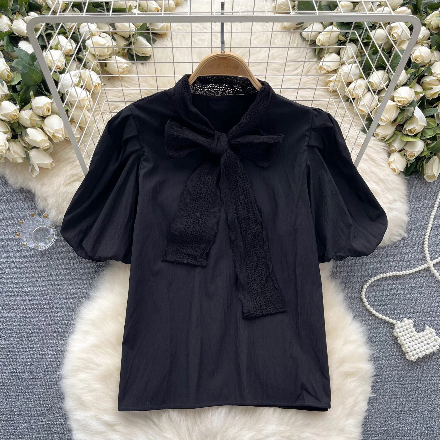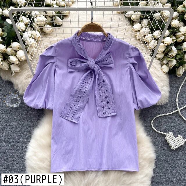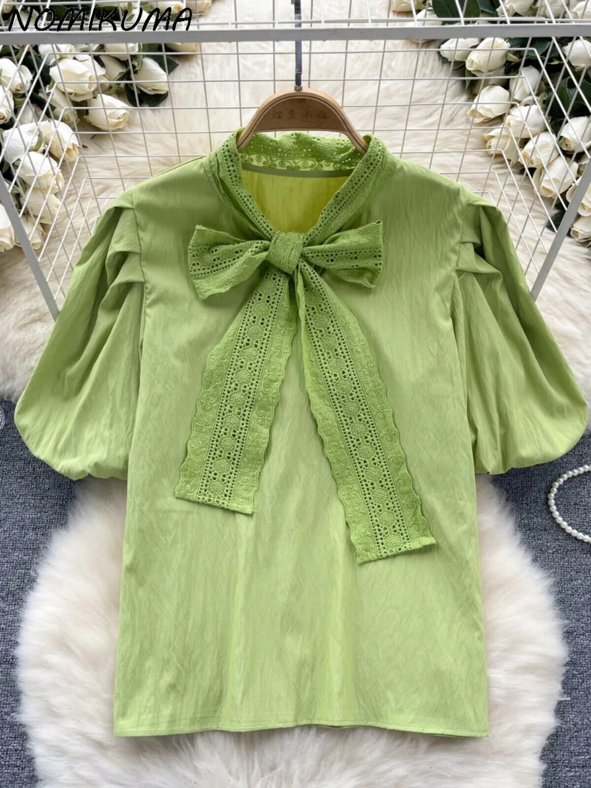 Nomikuma フレンチスタイルパフスリーブシャツ夏弓包帯ニッチブラウストップ 2024 リボン サマー 夏物