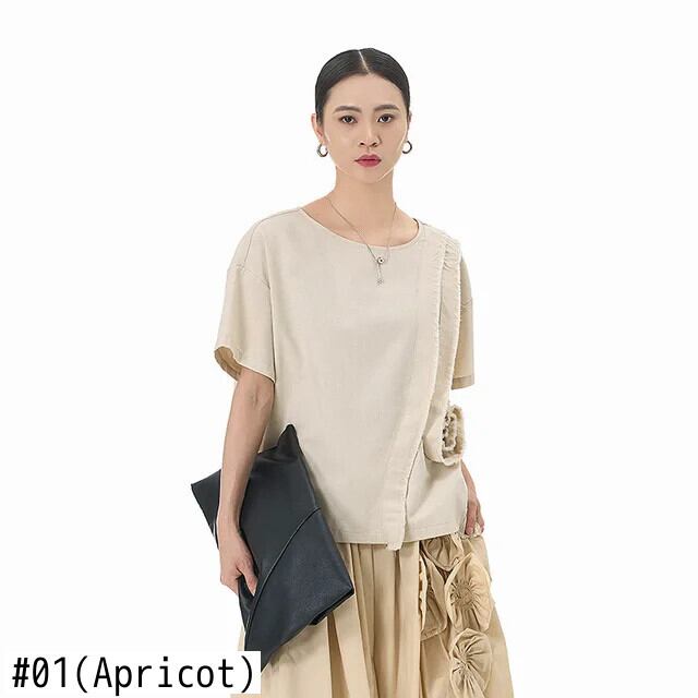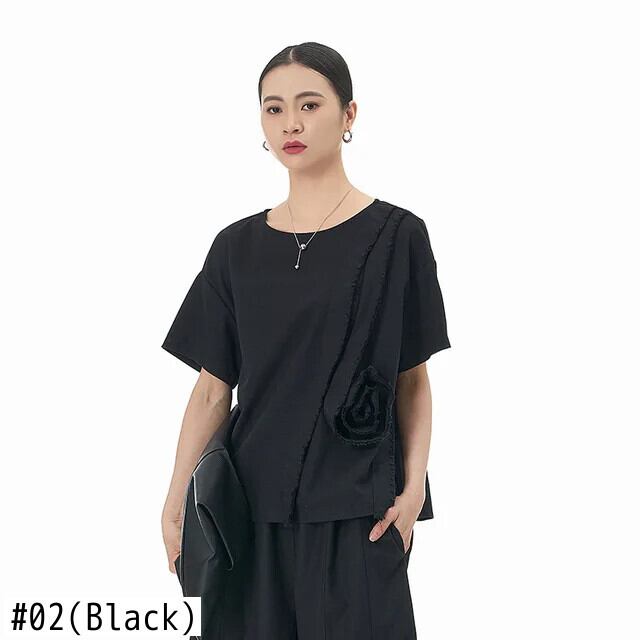 Nomikuma ese Style フラワー ファーエッジ 半袖 Tシャツ 2024 夏 レディース 万能トップス ショート ハーフスリーブ サマー 夏物 フラワーデザイン