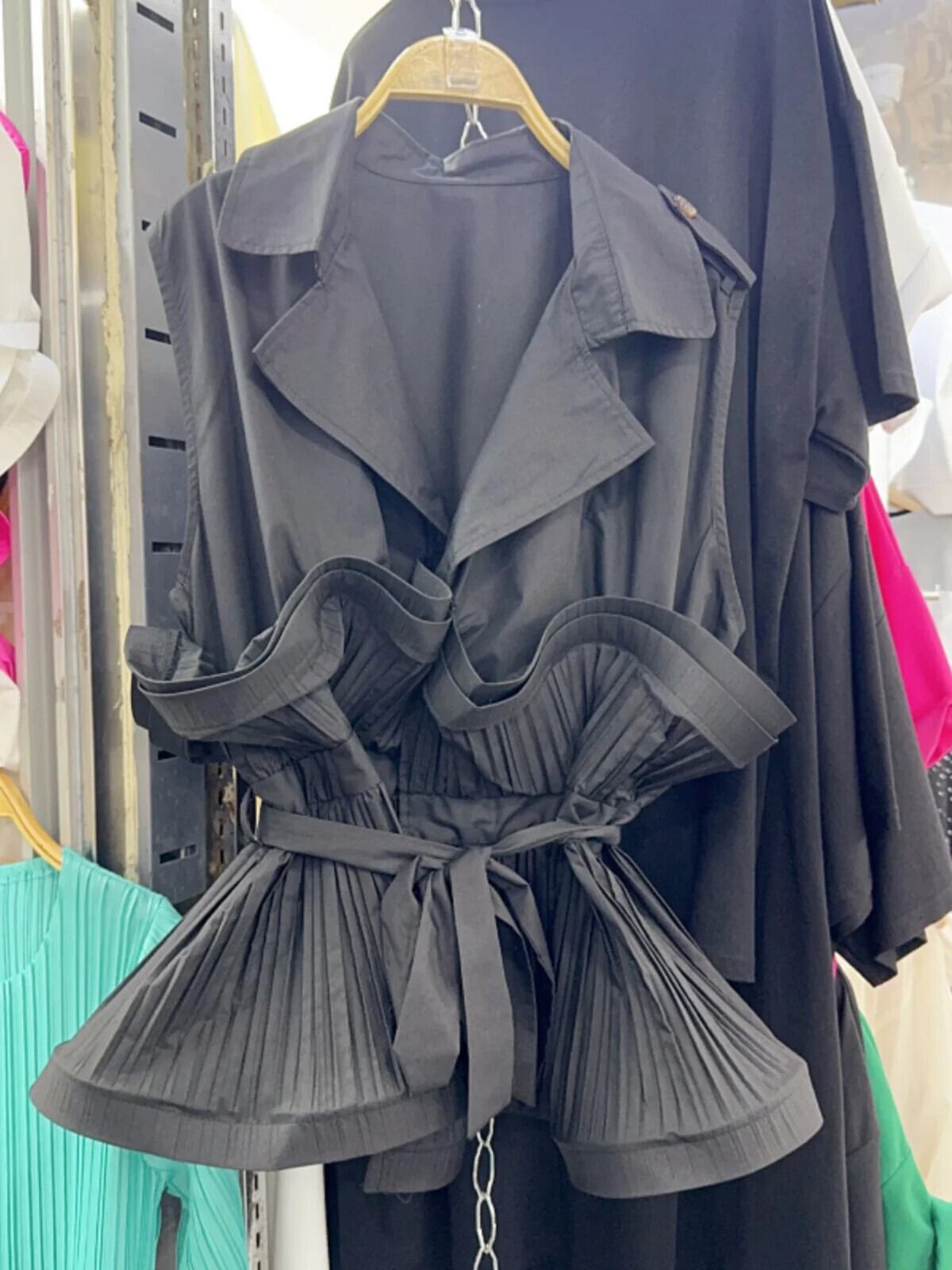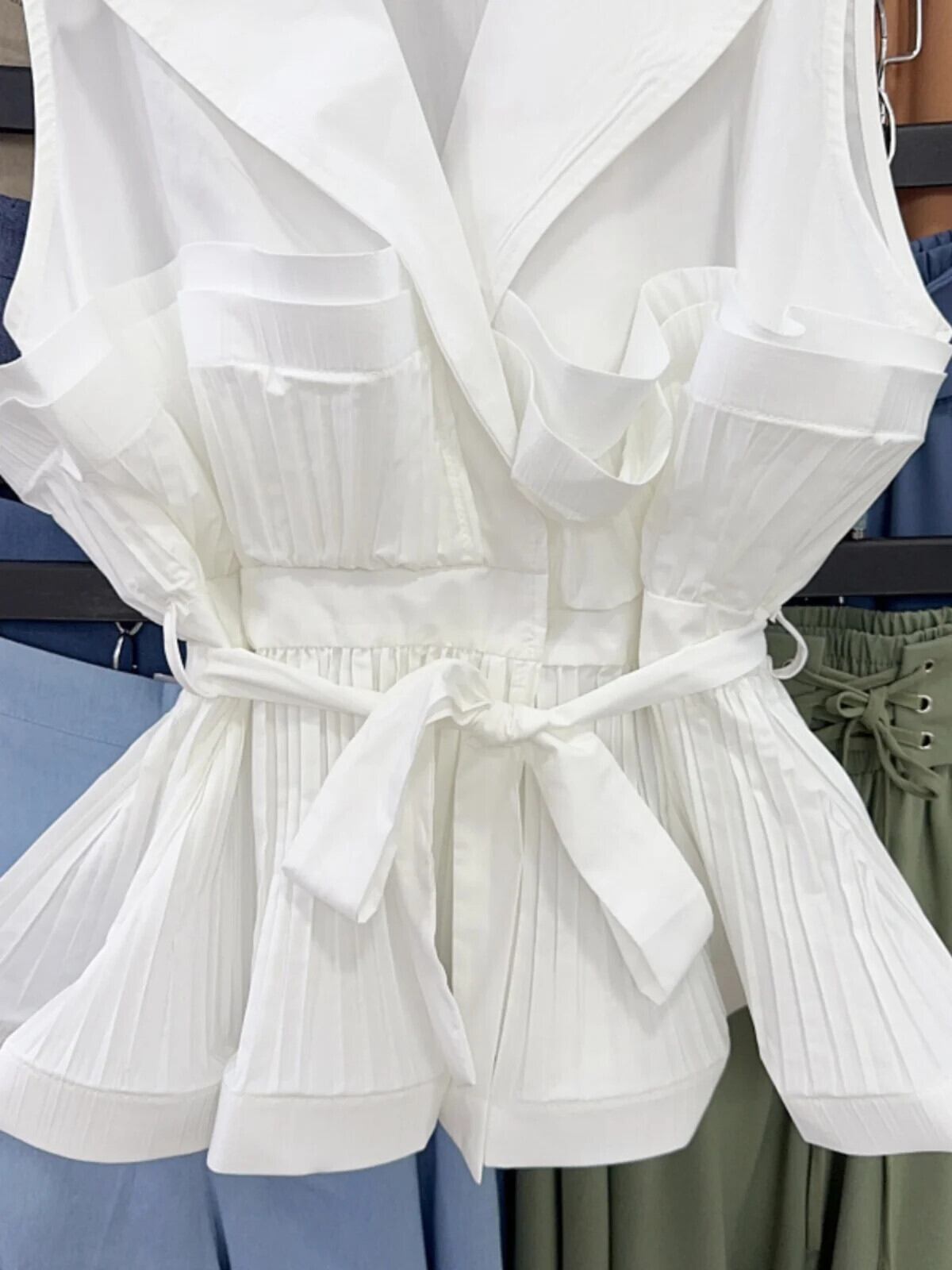Nomikuma 2024 夏スタイルターンダウンカラーノースリーブベスト不規則フリルエッジウエストネクタイシャツ サマー 夏物