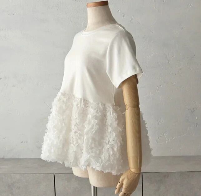 Nomikuma 2024 半袖パッチワークペタル レディース Sweet ese Style ドールシャツ 半袖Tシャツ ショート ハーフスリーブ 大人ガーリー スウィート キュート カジュアル