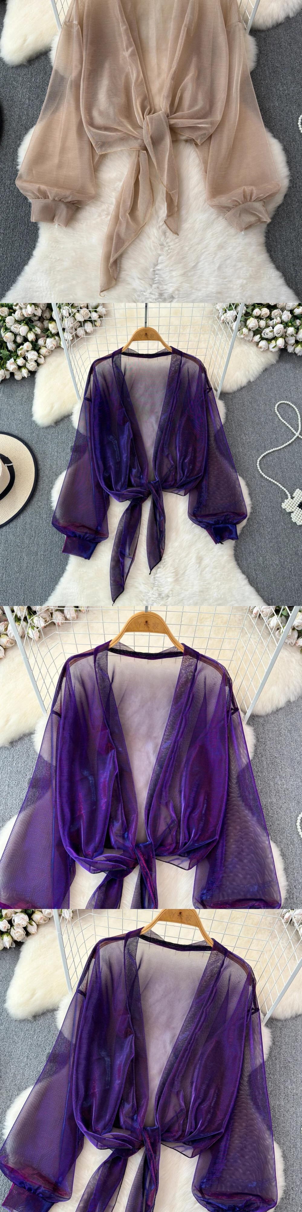 Nomikuma アイス日焼け止めカーディガン薄い 2024 夏シフォンショールカジュアルスタイルシャツオープンステッチ サマー 夏物 シルク